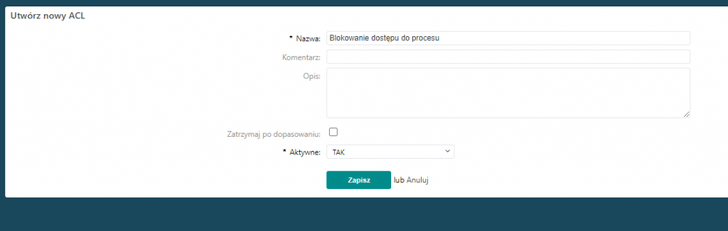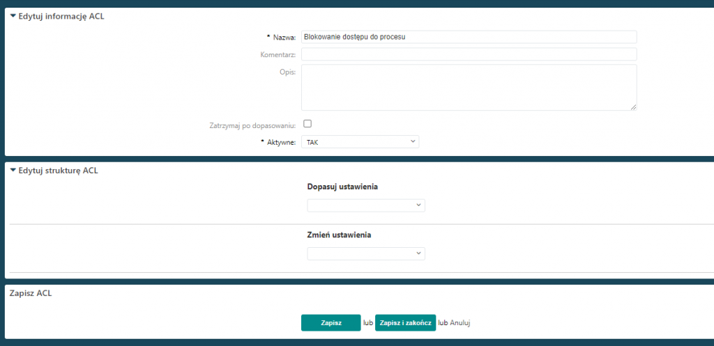 Aby dodać nowe ustawienie ACL dla procesu, należy: