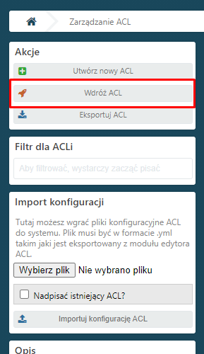 Po wpisaniu prawidłowego usera i ID procesu zapisujemy zmiany, a następnie musimy wdrożyć ACL: